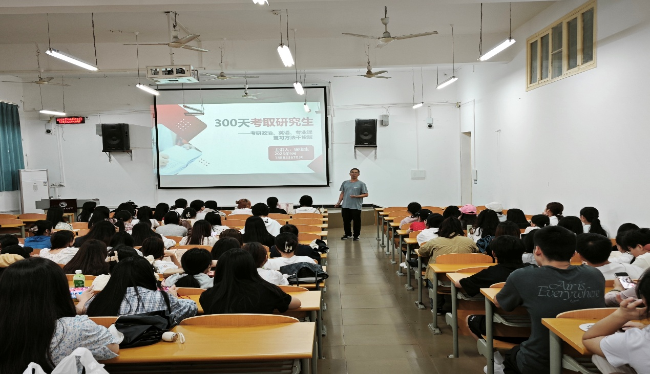 为切实帮助学前教育学院2023级专升本学生科学规划考研路径、系统掌握备考策略,进一步提升升学竞争力。2025年9月24日,学前教育学院在博文楼101教室成功举办了主题为“300天考取研究生——考研政治、英语、专业课复习方法干货版”的专题考研宣讲会。本次宣讲会由徐俊生老师主讲,大三专升本全体同学参加。