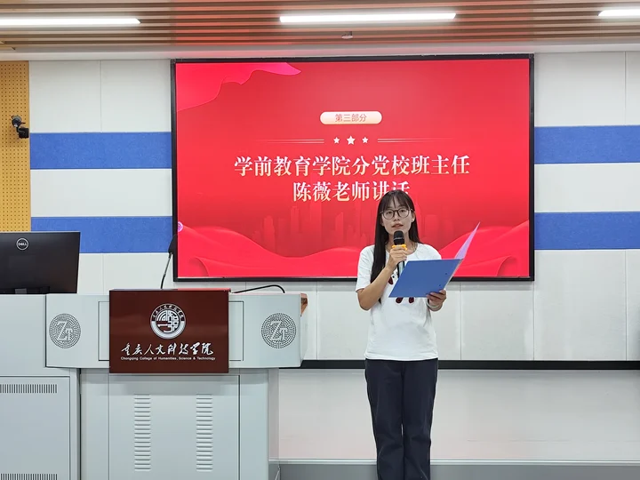 随后,学前教育学院分党校班主任陈薇老师发表讲话。她详细讲解了本次培训的纪律要求与学习安排,希望大家严格遵守纪律,不迟到、不早退,认真做好笔记。内容具体、条理清晰,让学员们对后续学习有了更加清晰的认识。