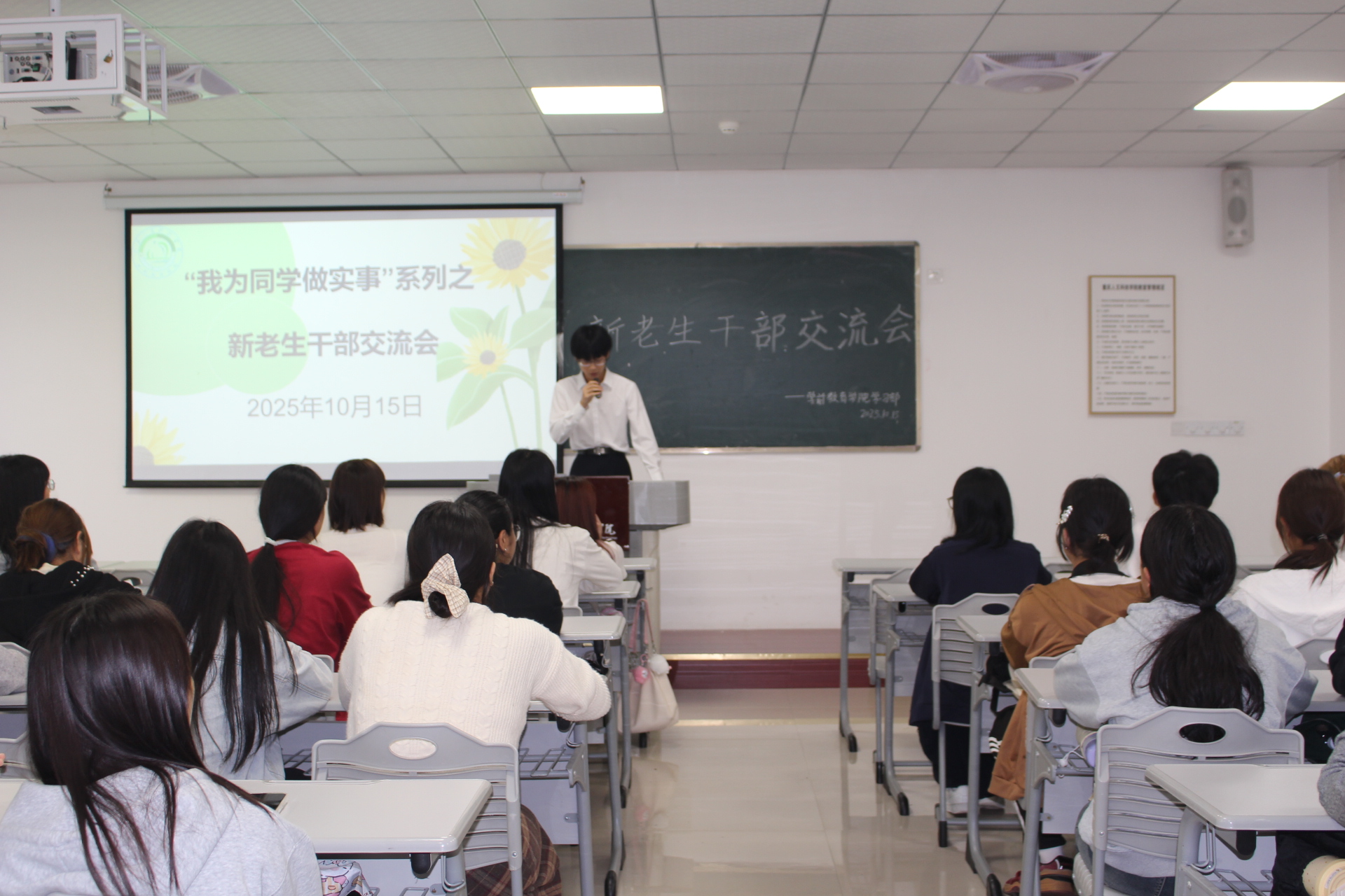 交流环节中,新生干部积极提问,就“如何平衡学习与工作”“如何调动班级积极性”等话题与学姐展开热烈互动。现场气氛融洽,讨论深入,大家纷纷表示受益匪浅。