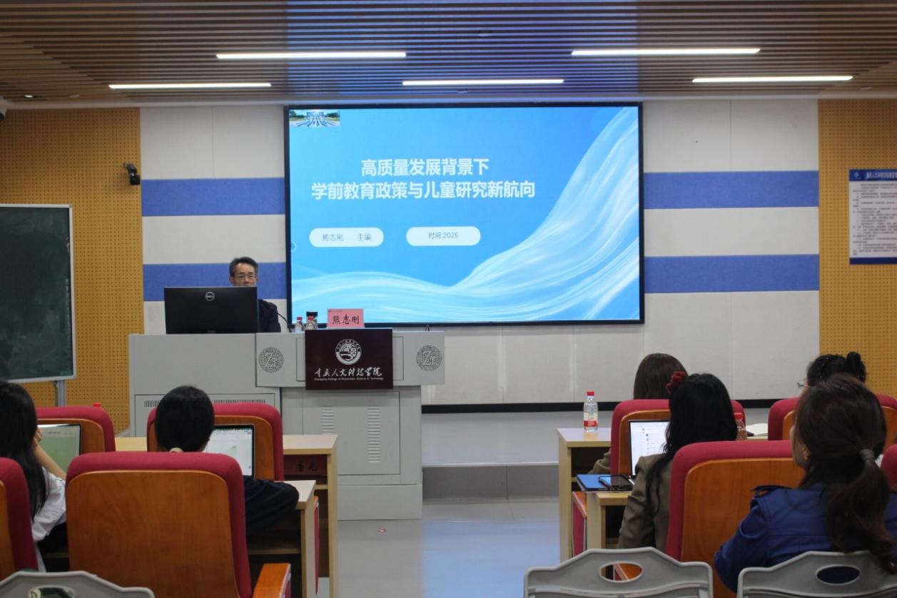 为推动我校学前教育专业的创新发展、提升科研水平与人才培养质量,2025年10月20日上午学前教育学院于朝晖楼151001教室成功举办了“高质量发展背景下学前教育政策与儿童研究新航向”暨“以智助研:AI赋能幼儿园教师专业发展的创新实践”讲座。本次讲座特邀中国人民大学书报资料中心幼儿教育导读杂志社社长兼主编熊志刚担任主讲,学院全体教师和大三部分学生代表参加本次活动。