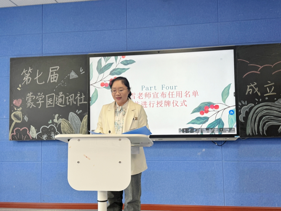 议程第四环节,学院党总支副书记、蒙学园通讯社指导教师左雪上台,正式宣读第七届蒙学园通讯社新一届成员任职名单,并向新晋加入的新一届成员致以热烈的祝贺。