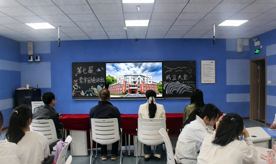 议程的第二环节,现场大屏播放了蒙学园通讯社的成长视频。视频介绍了通讯社全体成员的个人风采与技能,回顾了社团近年来开展的各类活动。从策划筹备到现场执行,一幕幕精彩瞬间串联成社团发展的生动轨迹,充分展现了通讯社高水平的专业素养与强有力的团队精神。