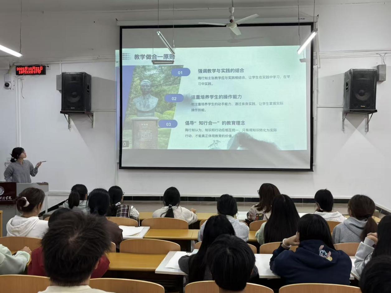 自“学陶师陶”教育实践活动开展以来,2025级学前教育5班聚焦专业技能提升,于10月下旬启动“小先生互助课堂”活动。经过一周的实践探索,琴法、书法、绘画、舞蹈四大技能小组各展所长,在互教互学中实现双向成长,让专业学习焕发新活力。
