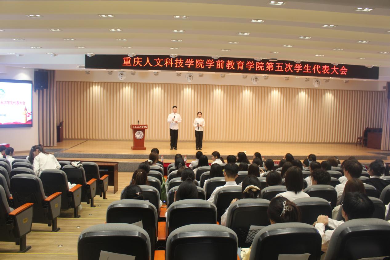 为加强学院学生组织建设,团结广大同学,凝聚青年力量,促进全院学生成长发展,学前教育学院于2025年11月4日在富学楼图书馆报告厅隆重召开第五次学生代表大会。学前教育学院党总支副书记左雪、团总支书记游欢、辅导员李新艳等老师与校学生会代表、兄弟学院学生会代表及学院75名学生代表共同出席了本次会议。