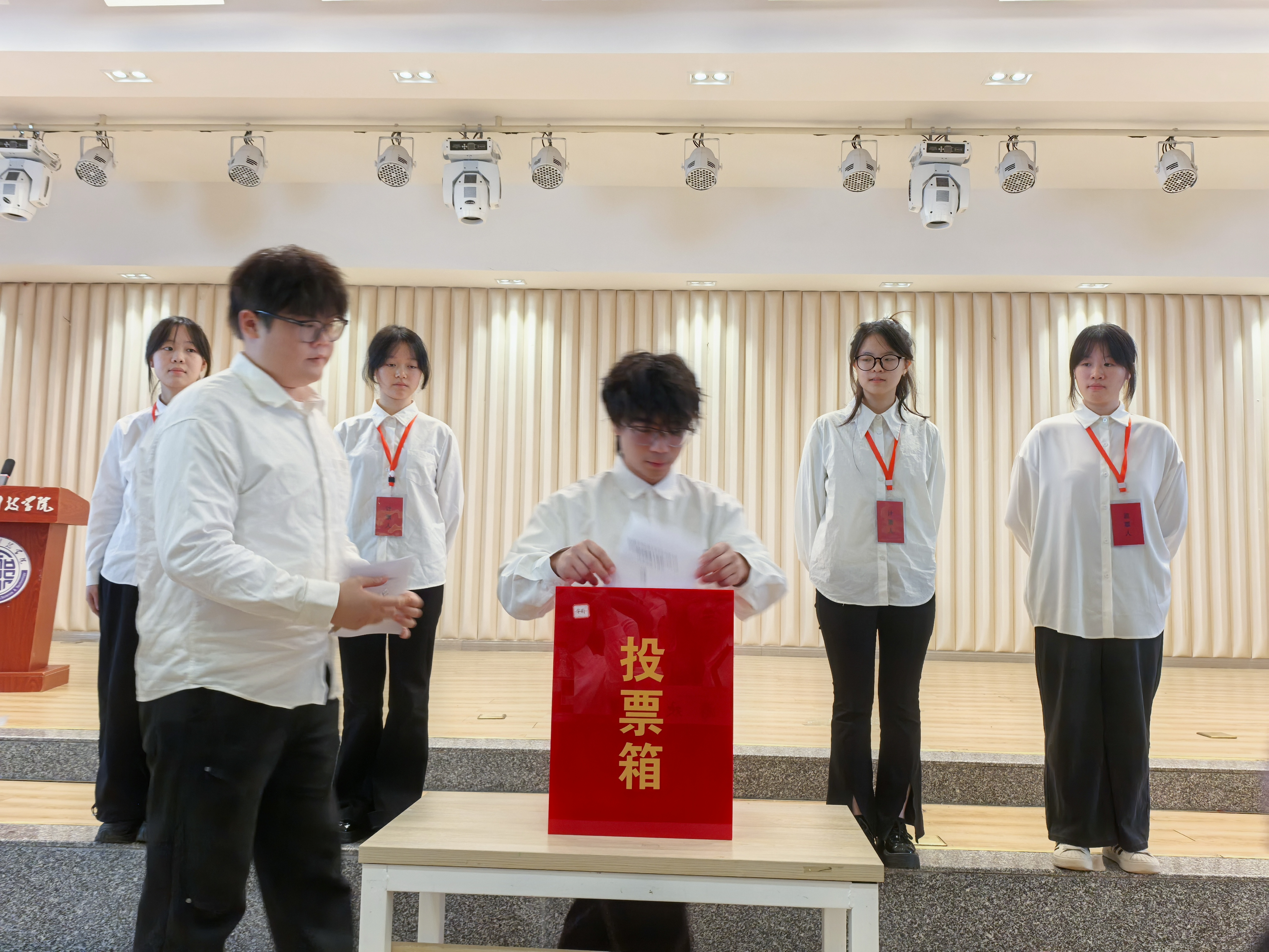 随后,大会审议通过了《选举办法》,严格遵循“公平、公正、公开”的选举程序和“民主集中”原则,选举产生了吴佳音、彭恋、黄雨蝉等三位同学为新一届学生会主席团成员。全体代表以热烈掌声向当选者表示祝贺。