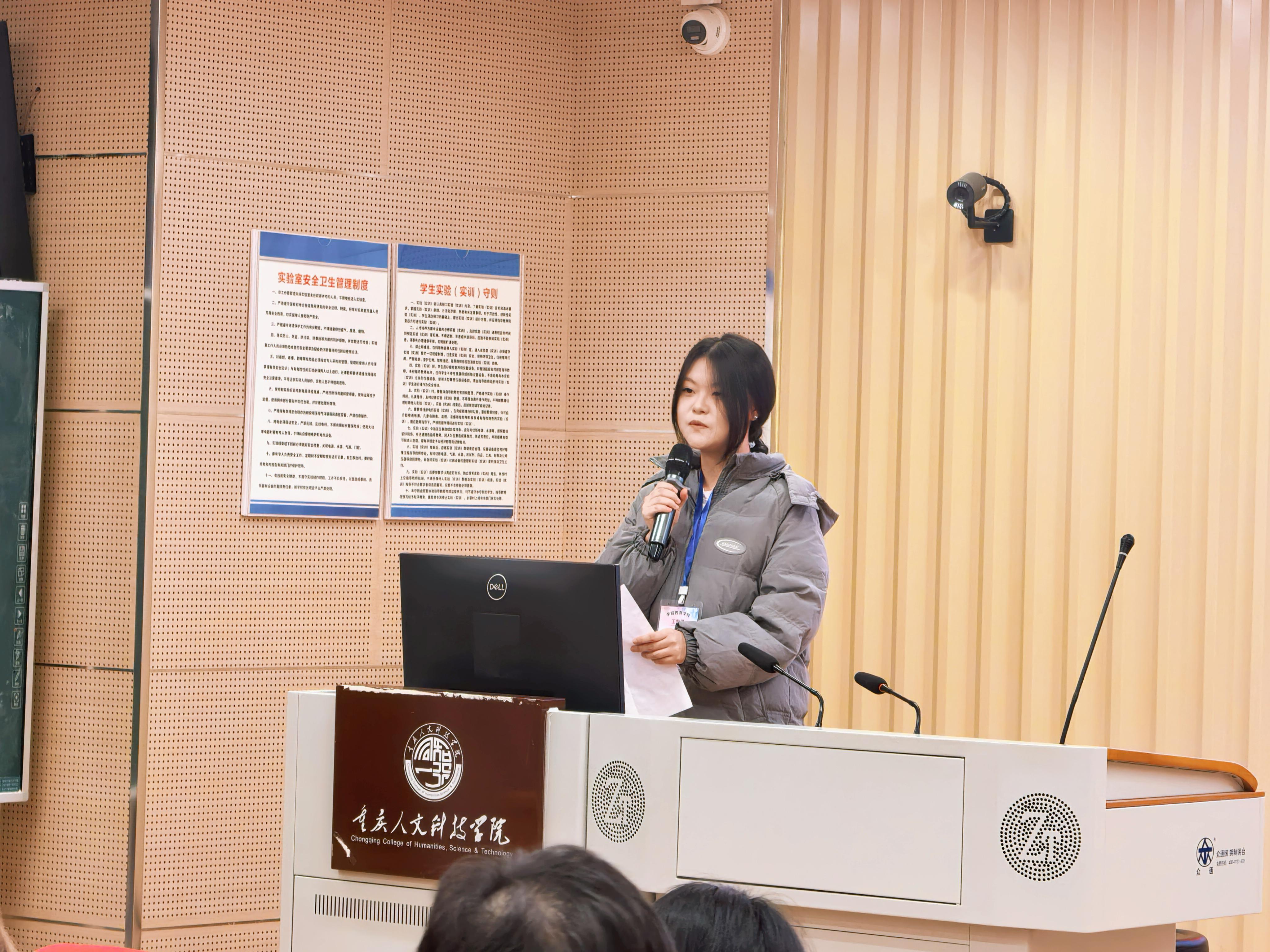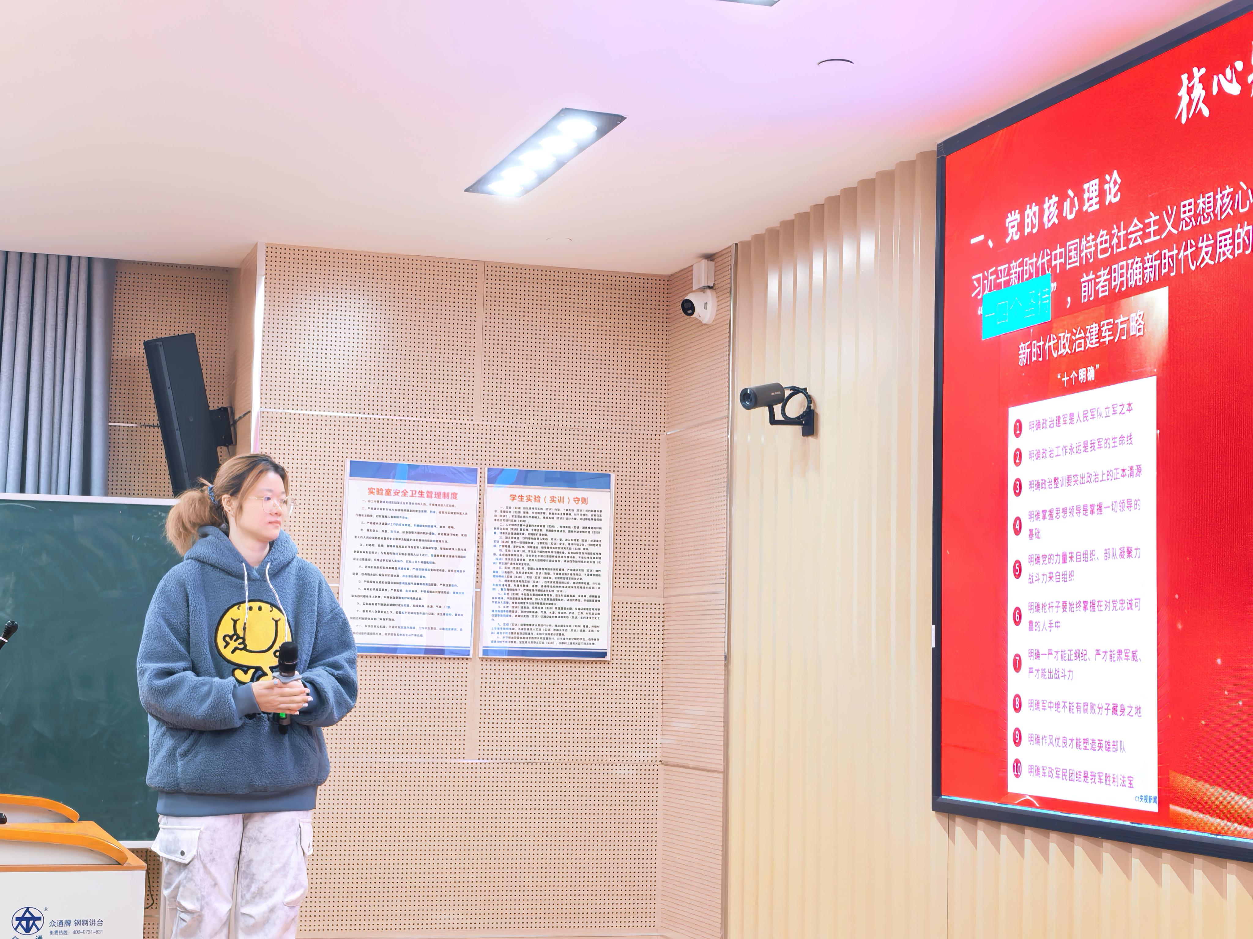 2024级3班团支书杨絁瑀同学首先上台分享。她以“读党团知识,铸青春信仰”为题,结合自身学习和实践经历,生动阐述了党团知识对青年成长的重要意义。她列举了参与志愿服务、主题团日活动等具体事例,展现了新时代青年如何将理论学习转化为实际行动,在服务集体和社会中践行青春担当。同时,她号召团员们珍惜青春时光,主动加强理论武装,争做有理想、敢担当、能吃苦、肯奋斗的新时代好青年。