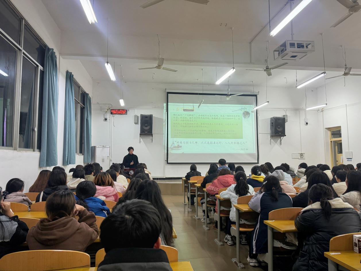 为传承和弘扬陶行知教育思想,加强学生对陶行知教育思想的学习与理解,切实提升学生的思想境界和道德素养,2025年11月30日晚,学前教育学院2025级学前教育4班牵头,在博文楼1101教室面向学前教育专业2024级、2025级部分学生代表开展“行知故事宣讲会”活动,辅导员陈薇老师以及200余名学前教育专业学生到场聆听。