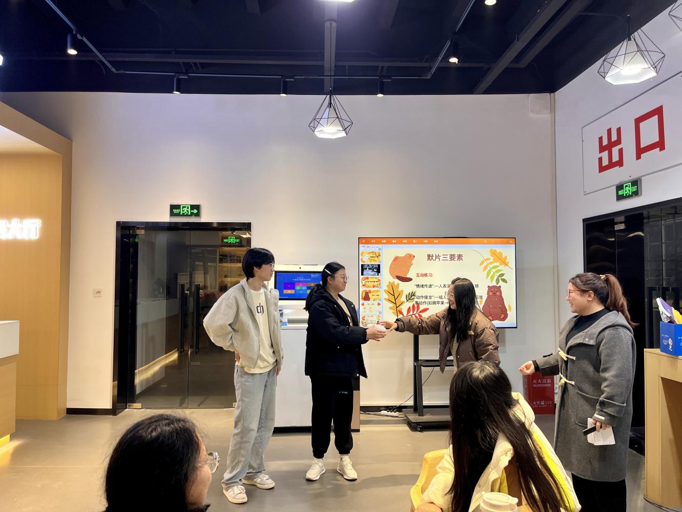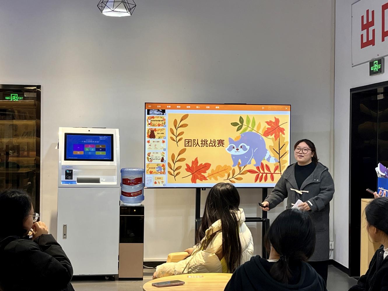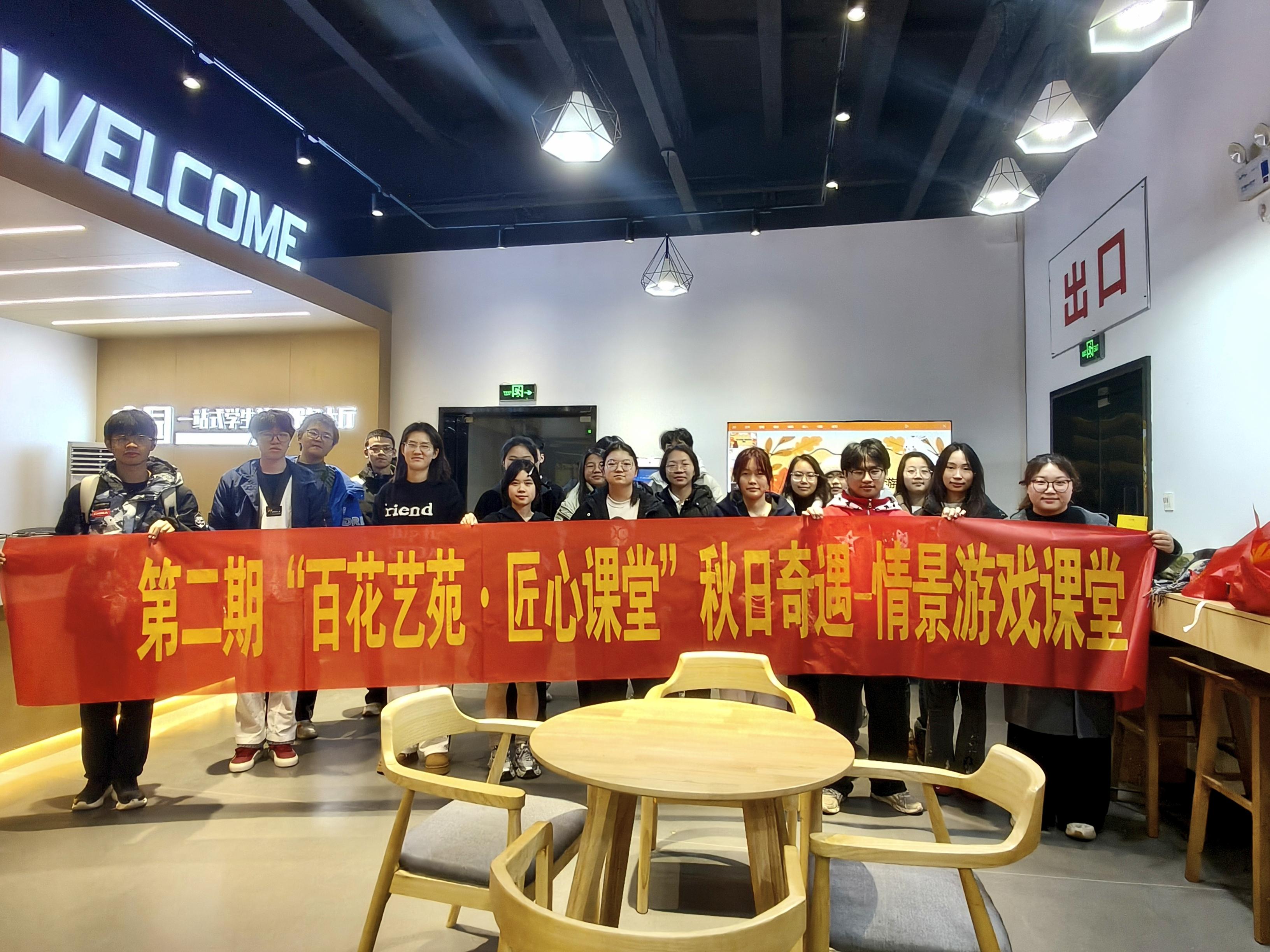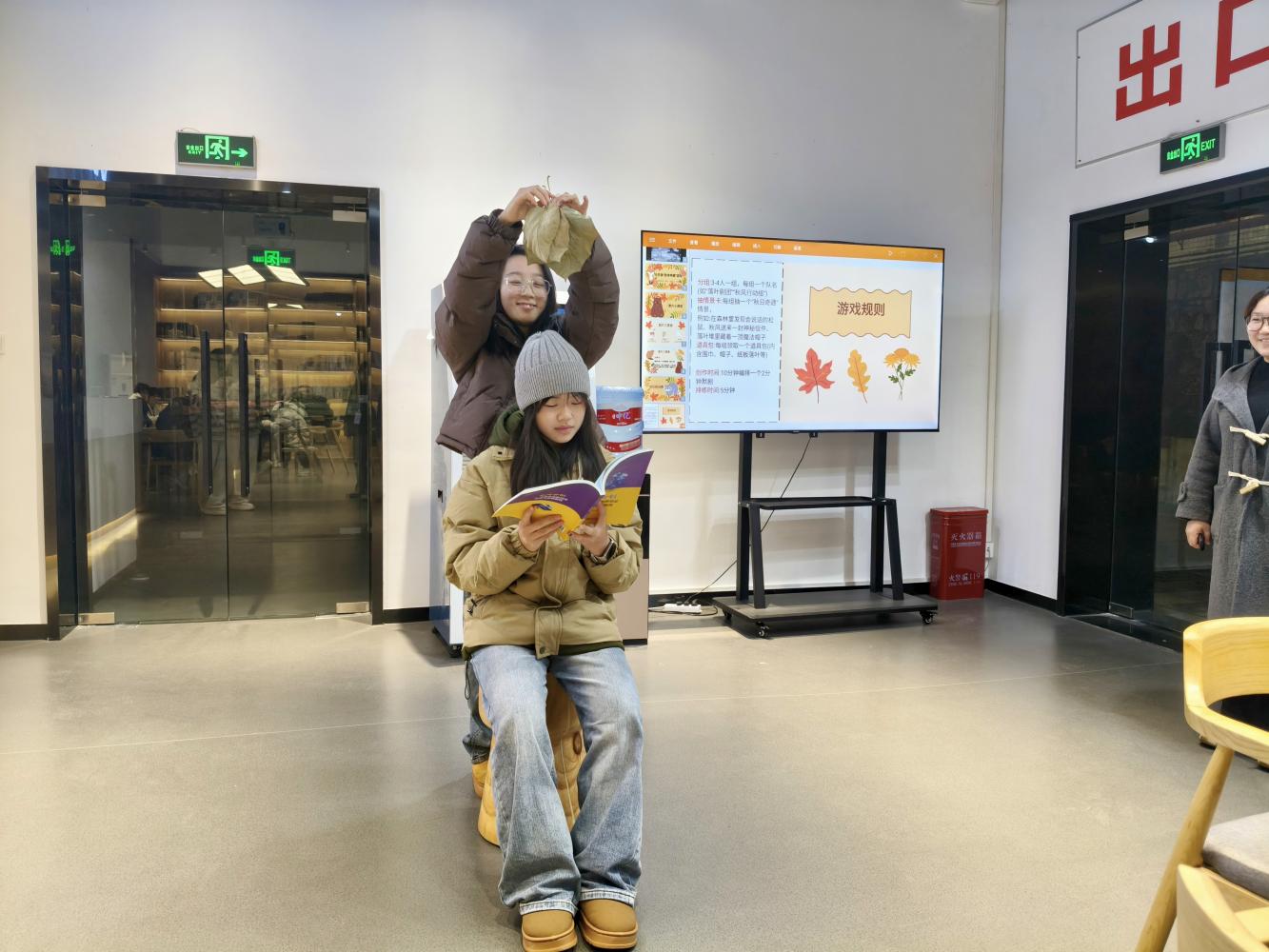 2025年12月8日晚上18:00,庠园一舍特设党支部联合儿童游戏社于庠园一站式学生社区服务大厅举办“百花艺苑・匠心课堂”第二季第六期——“秋日奇遇”情景游戏体验课活动。本次活动由向梨娜主持,为同学们搭建了沉浸式艺术实践平台,让大家在趣味互动中感受默剧魅力、锤炼专业技能。