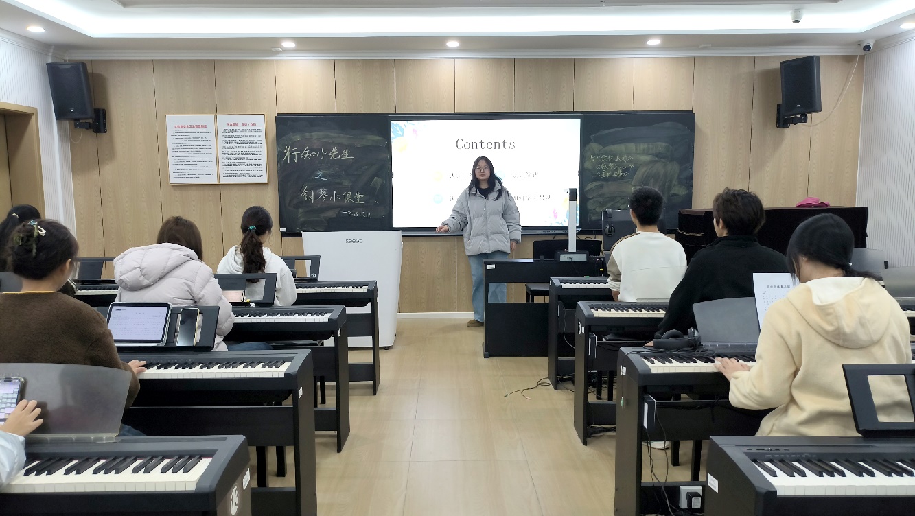 为深入践行学校“导航小先生”朋辈帮扶活动要求,弘扬陶行知“教学做合一”“爱满天下”的教育理念,落实“互教互学、共同进步”的育人目标,学前教育学院以学业帮扶为核心,针对大一新生专业技能提升需求,组建导航学长帮扶小组,于2025年12月11日在十五教907室开展“琴韵传情,知行共进”——“导航小先生”钢琴集体指导活动,为大一新生提供精准、系统的钢琴技能帮扶。